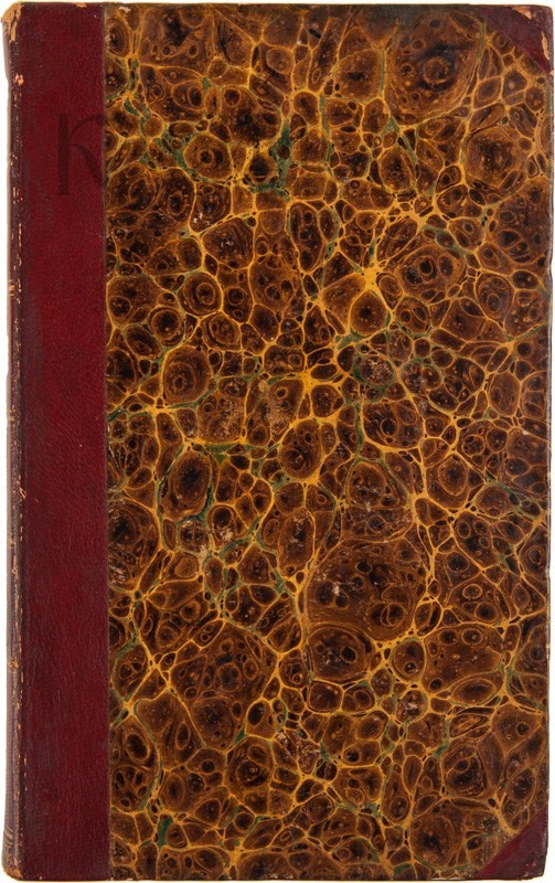 Экземпляр в старинном полукожаном переплете с золотым тиснением по корешку. Крапленые обрезы. Незначительные потертости переплета, незначительные «лисьи» пятна, пятнышко от воды на верхнем поле страниц в начале блока, в остальном блок чистый. Ярлык Антикварной книжной торговли В.И. Клочкова на нахзаце. Нет авантитула и шмуцтитула перед основным текстом.