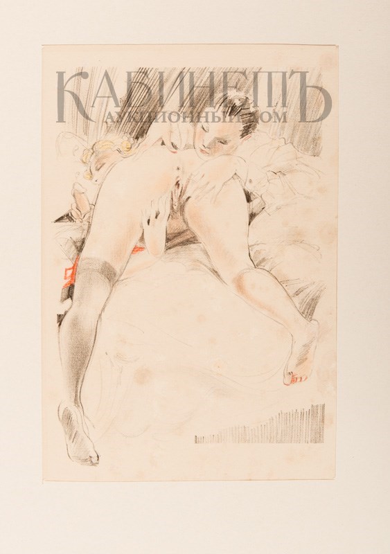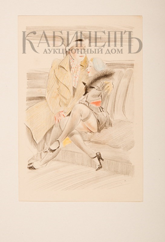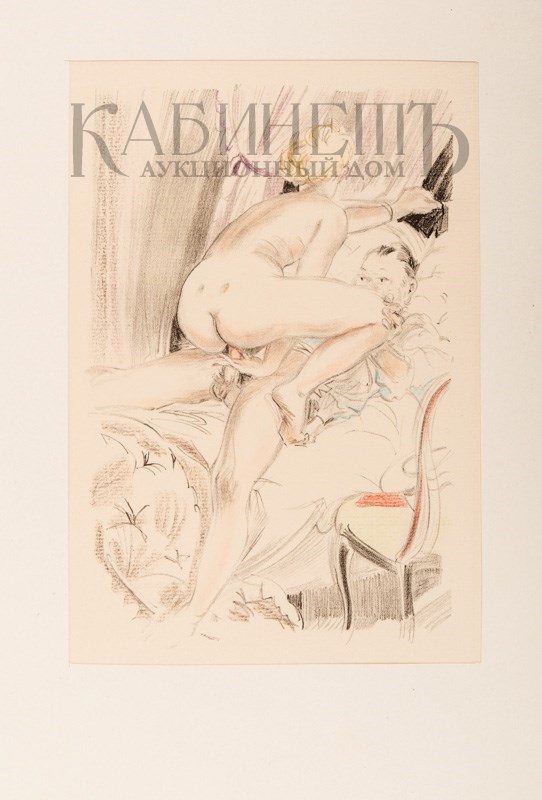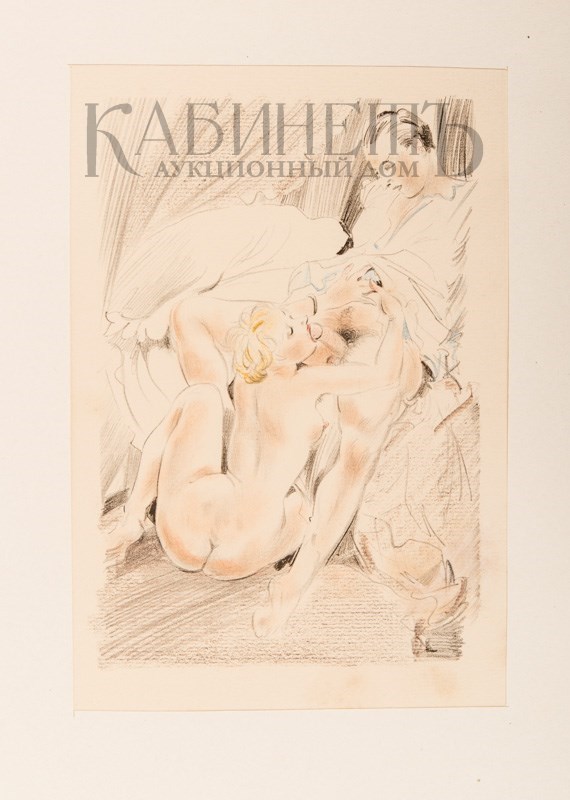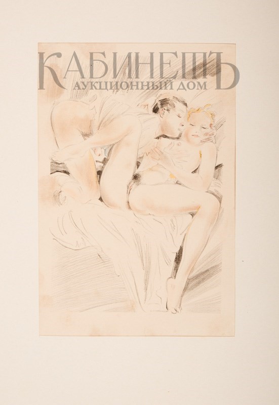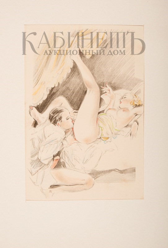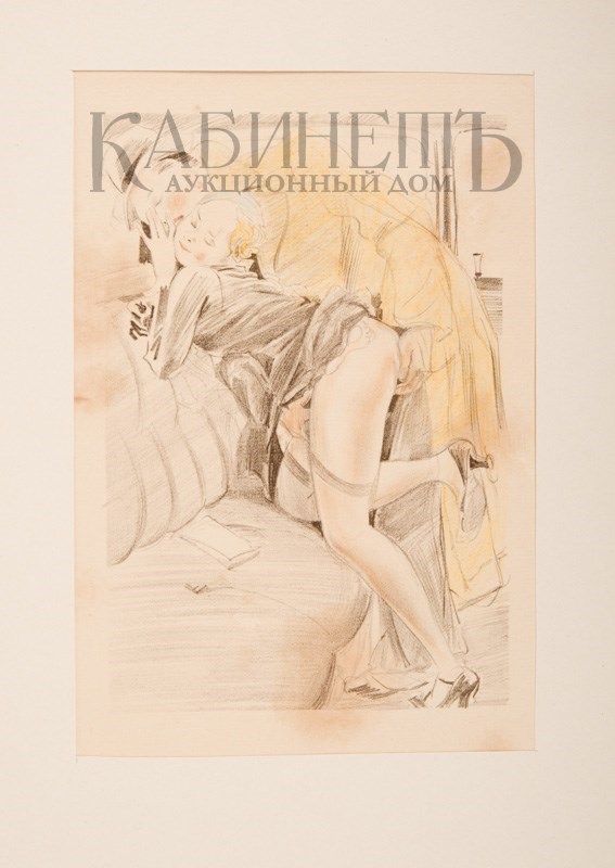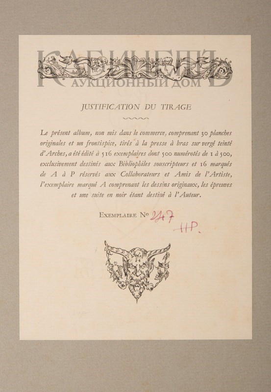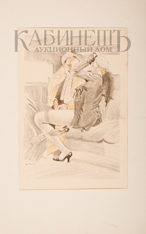 Титульный лист и 30 листов иллюстраций, выполненных в технике литографии с ручной раскраской цветным карандашом. Каждая литография оформлена в паспарту.