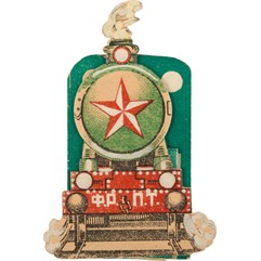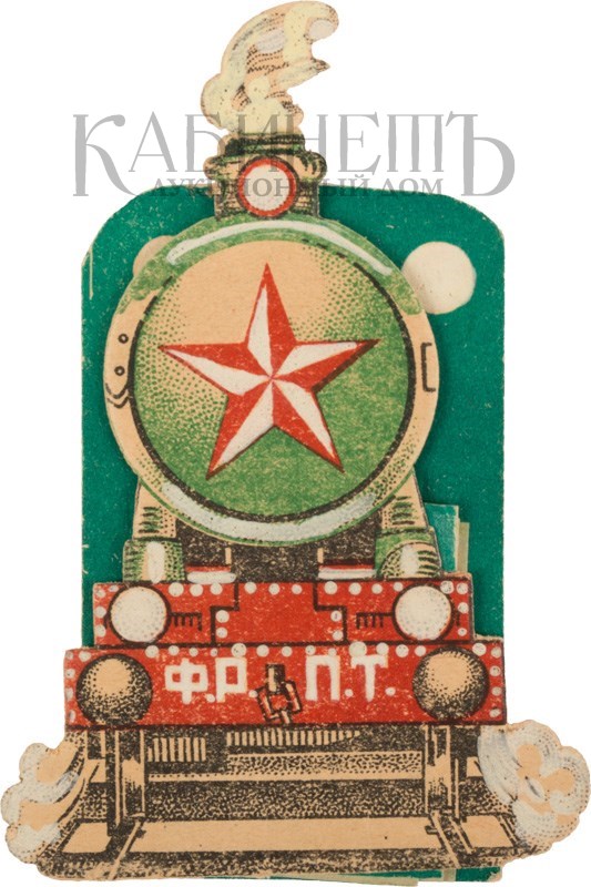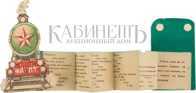 Бумага, литография. Книжка-раскладушка со светящимися в темноте элементами (фары, пар, семафор).