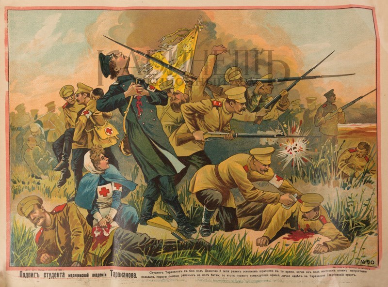 Лубочная картинка. Подвиг студента медицинской академии Тараканова. №80. М., Литография товарищества И.Д. Сытин, 1914 –1915.