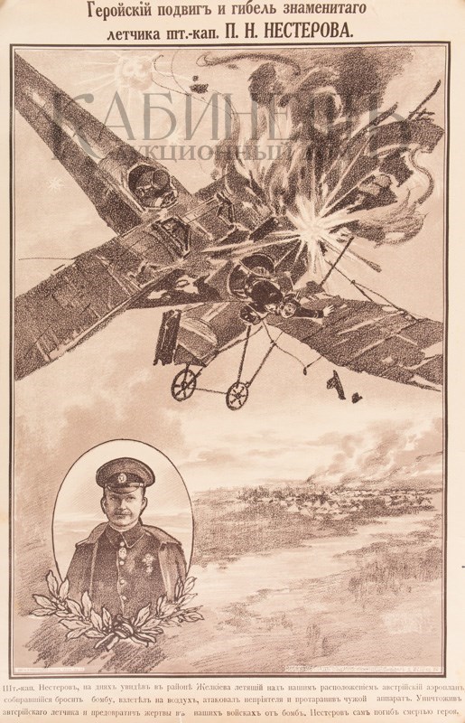 Лубочная картинка. Героический подвиг и гибель знаменитого летчика штабс-капитана П.Н. Нестерова. М., [Б.м.и.], 1914 –1916.