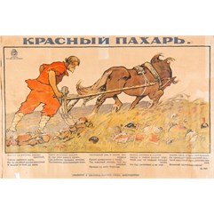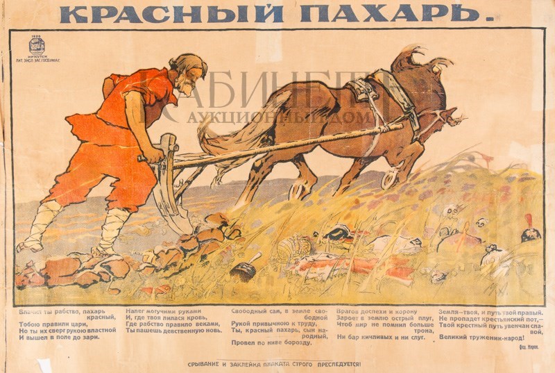 Плакат. Художник дед Мирон.Красный пахарь. Иркутск, Гос. Издательство, литография Экспедиции заготовления государственных бумаг, 1920.