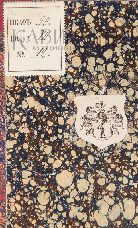 Экземпляр в старинном западном полукожаном переплете с золотым тиснением и бинтами на корешке. Тонированные боковой и нижний обрезы. Суперэкслибрис Н. Шильдера на корешке. Потертости, временные пятна и разводы от воды на первых страницах, следы от краски свободном листе в начале блока и на с. 16 тома I, надрыв с. 153-154 тома I, дореволюционная каталожная наклейка и фрагмент экслибриса на форзаце, ярлык переплетчика «E. Reichardt Liteinaia 38/2» на обороте свободного листа форзаца, некоторые листы мытые.