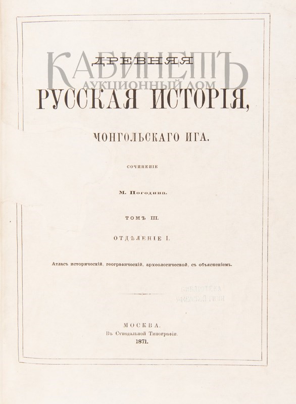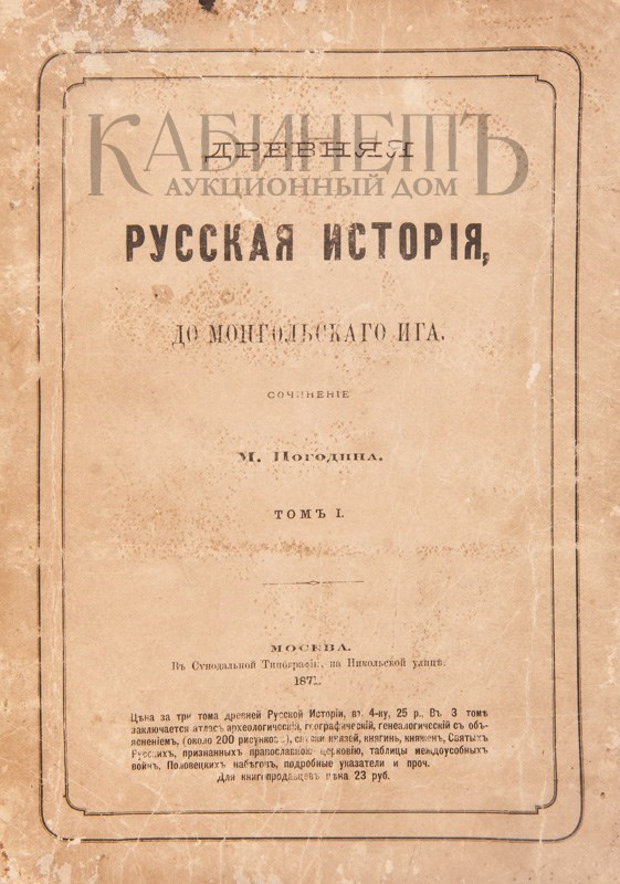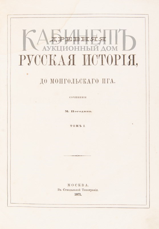 Прижизненное издание русского историка Михаила Петровича Погодина (1800–1875), обобщившее его исследования по древнерусской истории. Выход книги стал заметным событием в русской исторической науке.