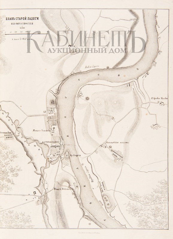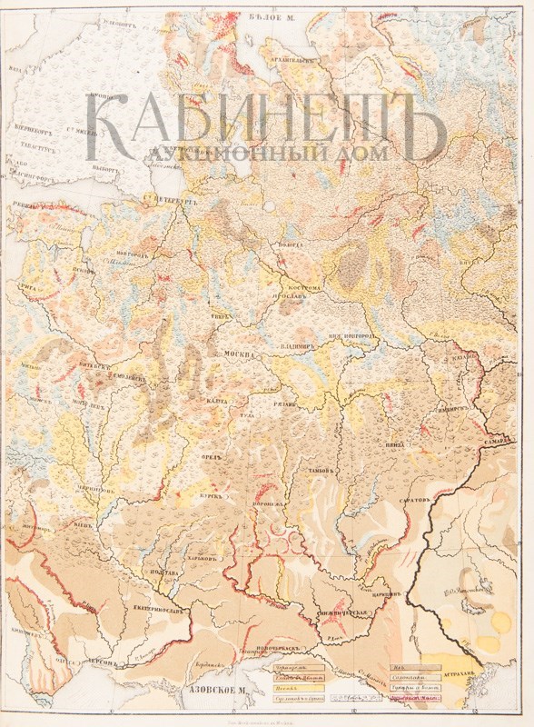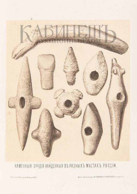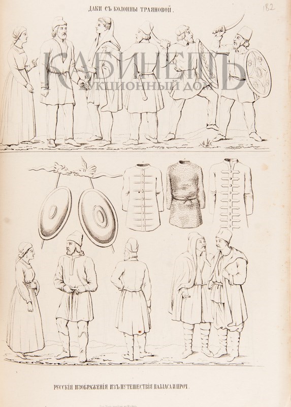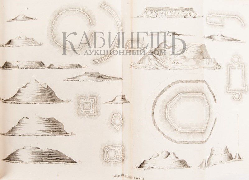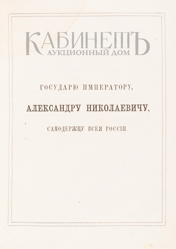 Экземпляр в трех современных цельнокожаных переплетах с бинтами и золотым тиснением по корешкам. Сохранены издательские шрифтовые обложки (кроме верхней обложки тома III). Обложки с незначительными утратами, дублированы, верхняя обложка тома II загрязнена по боковому краю, разводы от воды в начале и в конце блока тома I, в томе II инвентарный номер на нижнем поле авантитула, ошибки пагинации в начале тома II (491-495 вместо 401-405), в томе III дореволюционная печать на титульном листе, фрагмент титульного листа вырезан и заменен бумагой, текстовые страницы не разрезаны. Атлас без Отделения II.