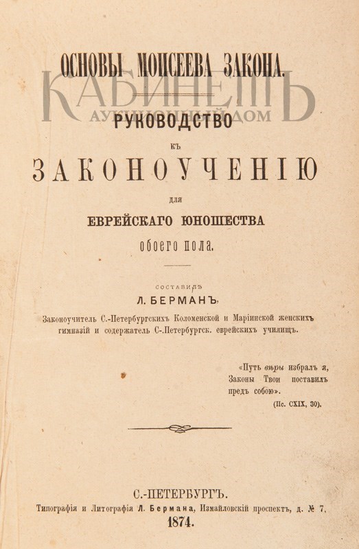 Берман Лазарь Яковлевич (1830–1893) – общественный деятель и педагог. С середины 1850-х годов занимался преподаванием, открыл в Митаве общеобразовательное училище для еврейских мальчиков, а в 1867 году, по соглашению с петербургским еврейским обществом, учредил в Санкт-Петербурге первые еврейские училища, которыми он фактически заведовал до конца 1880-х годов. В 1894 году эти училища перешли к Обществу распространения просвещения между евреями.