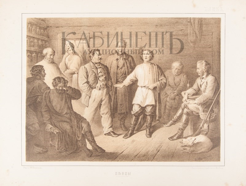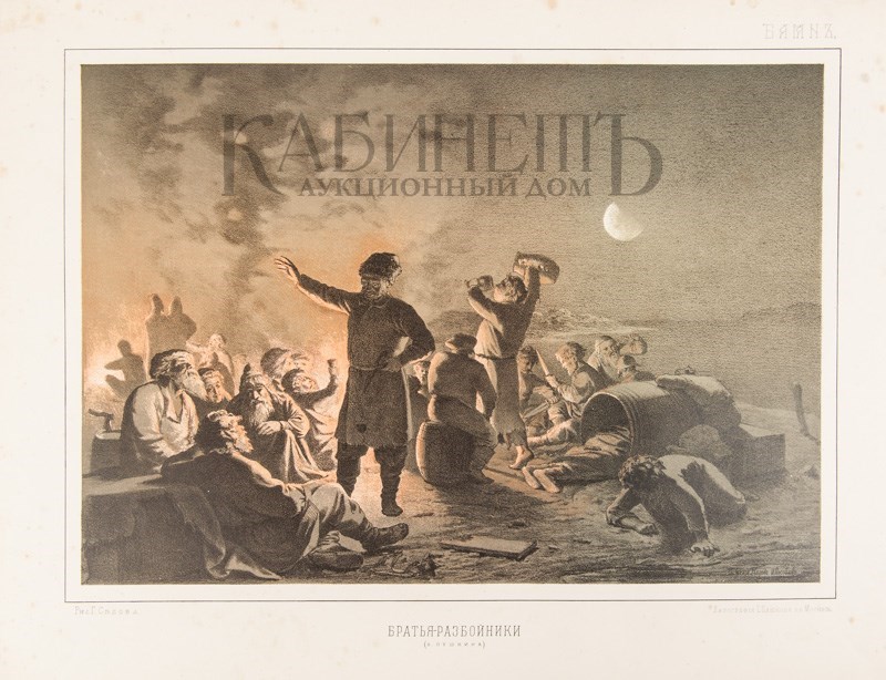 Литографии к произведениям А.С. Пушкина, М.Ю. Лермонтова, А.В. Кольцова, И.А. Гончарова, И.С. Тургенева, А. Толстого, И. Никитина по рисункам Н. Калмыкова, А. Саврасова, Поспелова и др.