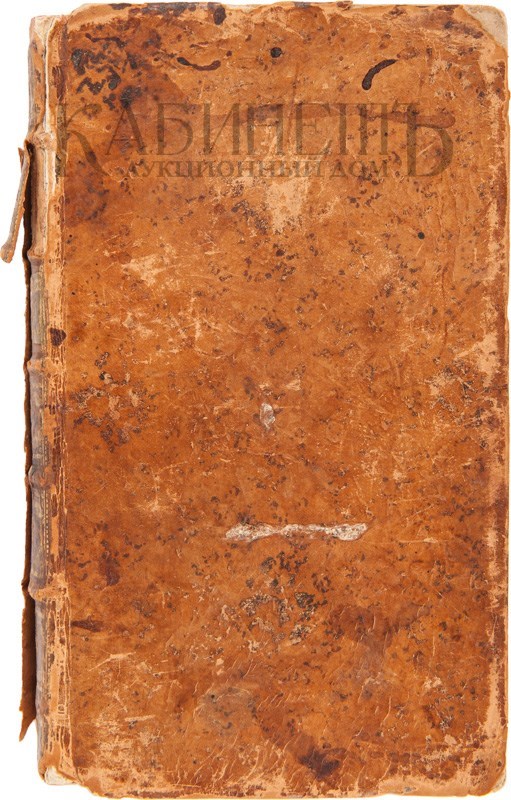 Экземпляр в старинном цельнокожаном переплете с золотым тиснением по корешку. Тонированные обрезы. Форзацы из бумаги «под павлинье перо». Потертости, утраты в верхней и нижней части корешка, разлом по корешку, временные пятна. Владельческая надпись орешковыми чернилами на титульном листе.