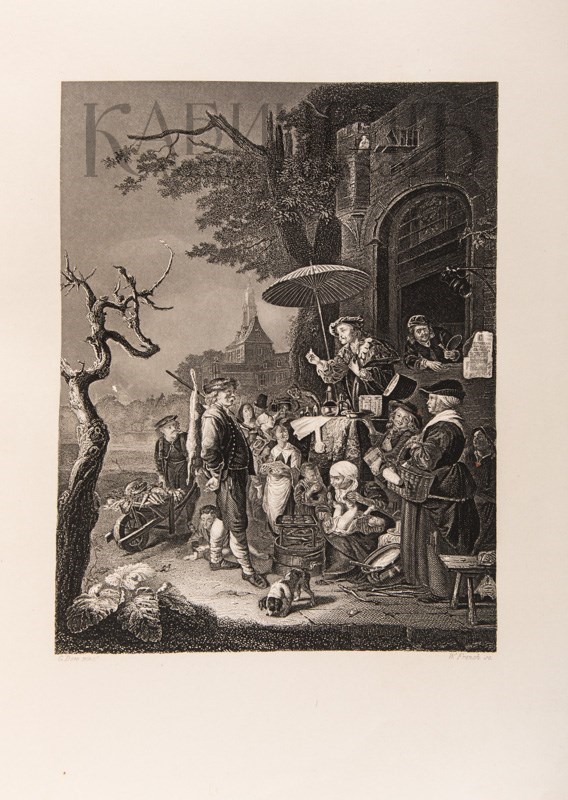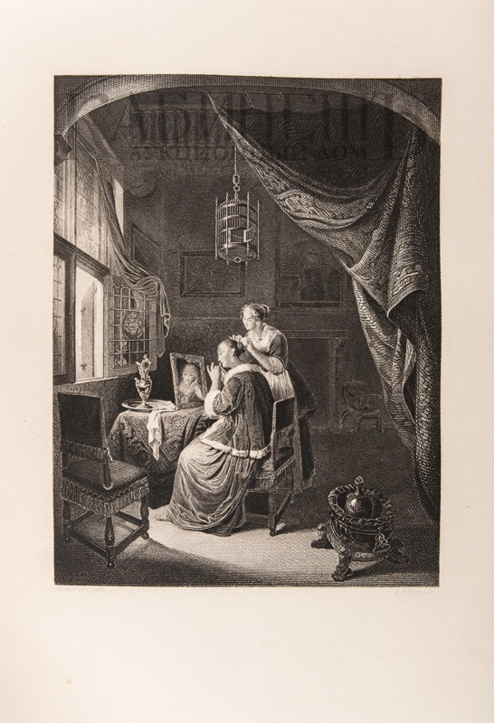 Экземпляр в старинном полукожаном переплете с золотым тиснением по корешку. Форзацы из бумаги «под павлинье перо». Небольшие потертости переплета, надрыв в верхней части корешка, временные пятна, загрязнения некоторых страниц, пятно от типографских чернил на последней странице и свободном листе нахзаца. Штамп Лавки писателей на свободном листе нахзаца.