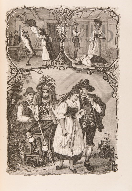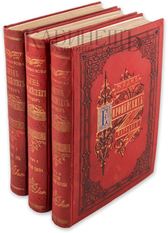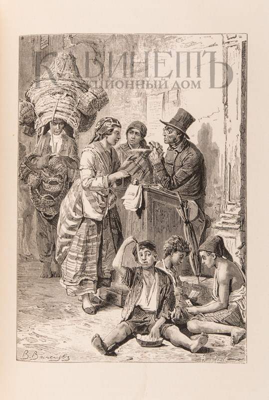 Экземпляр в издательских коленкоровых переплетах с полихромным тиснением по корешкам и крышкам, корешки аккуратно подреставрированы, форзацы современные. В томе I последний лист нарощен снизу.