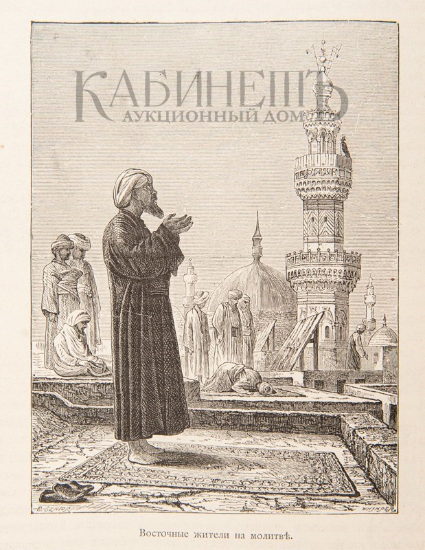Экземпляр в издательском художественном коленкоровом переплете с тиснением золотой и черной краской по верхней крышке и корешку. Форзацы из бумаги «геометрического» орнамента. Тройной золоченый обрез. Очень хорошая сохранность. Потертости и загрязнения в уголках крышек, реставрация верхней и нижней части корешка (надставлена кожа), надрыв защитной кальки у карты, незначительный развод на верхнем поле части страниц.