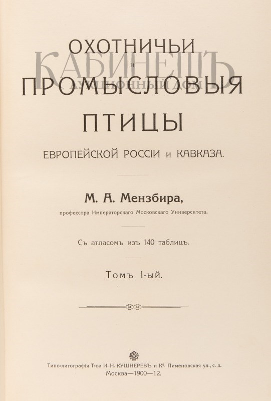 Экземпляр в издательских коленкоровых переплетах с полихромным тиснением по корешкам и крышкам. В т. I на авантитуле сведена владельческая надпись, в атласе выпадает одна иллюстрация. Очень хорошая сохранность.