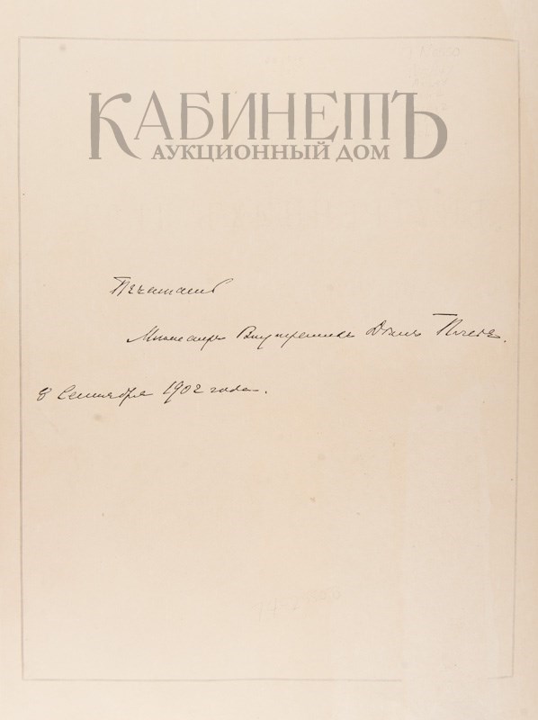Экземпляр в современных цельнокожаных переплетах с золотым тиснением по верхним крышкам и корешкам. Муаровая дублюра, золототисненная подвертка. Тройные тонированные обрезы. Незначительные пятна. Сохранена верхняя издательская обложка Приложения II с блинтовым и конгревным тиснением, повторяющим титульный лист. В томе I восстановлено верхнее и нижнее поле титульного листа, нижнее поле шмуцтитула, фрагмент нижнего поля с. 17-18, нечитабельный штамп на с. 101. В приложении I восстановлен фрагмент верхнего поля титульного листа и шмуцтитула, поля с. 13-14, фрагмент последней страницы. В приложении II обложка незначительно загрязнена, нижний уголок реставрирован, фрагмент титульного листа заменен, надписи простым карандашом на титульном листе, перфорация (владельческие инициалы?) в нижнем поле титульного листа, с. 99-100.