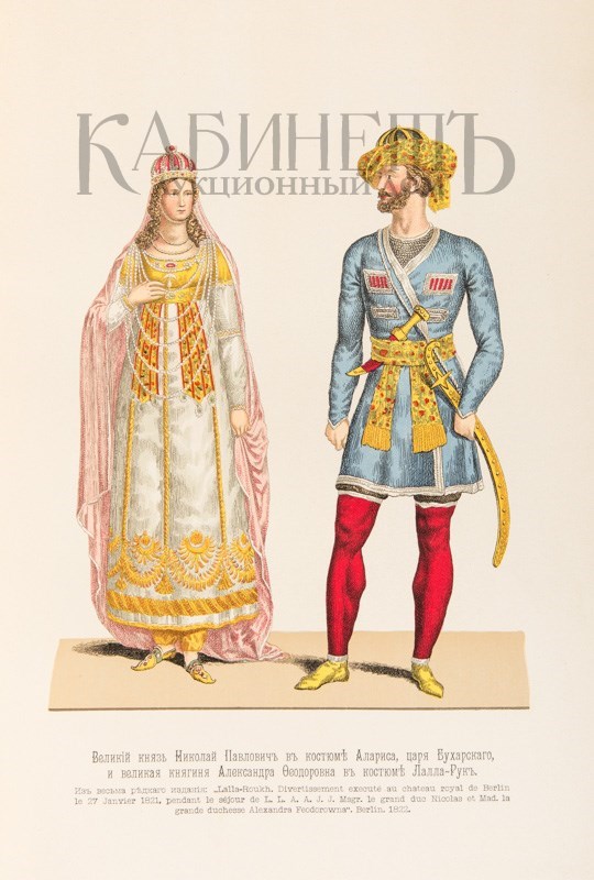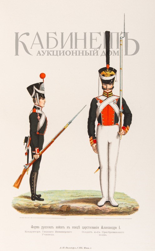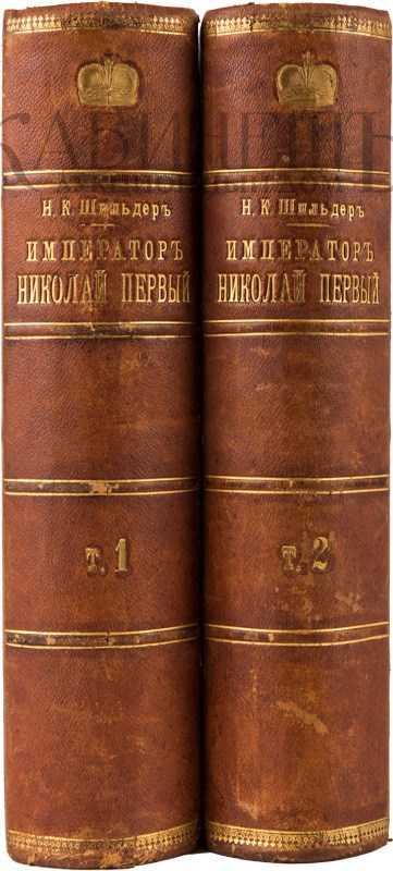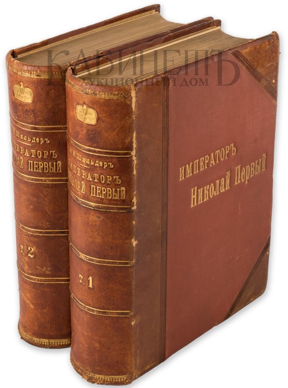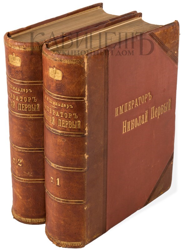 Экземпляр в двух старинных полукожаных переплетах с золотым тиснением и бинтами по корешкам. Золотые «головки». Сохранены верхние издательские шрифтовые обложки. В очень хорошей сохранности. Небольшие потертости переплетов. Владельческий штемпельный экслибрис на свободном листе форзаца, обложке, с. 1 в каждом томе, на авантитуле в томе I, пометки простым карандашом на титульном листе каждого тома.