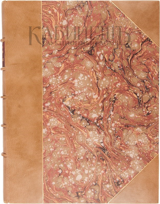 Экземпляр в современном полукожаном переплете с золотым тиснением по крышкам, бинтами и кожаной золототисненной наклейкой на корешке. Форзацы из бумаги «растительного» орнамента. Сохранена издательская шрифтовая обложка (обе сторонки). Листы обложки подклеены к блоку, мелкие фрагменты полей обложки восстановлены, подклеен надрыв верхней обложки (с оборотной стороны). Владельческая подпись на верхней обложке. Дореволюционный штамп на обороте титульного листа, букинистический штамп на внутренней стороне нижней обложки.