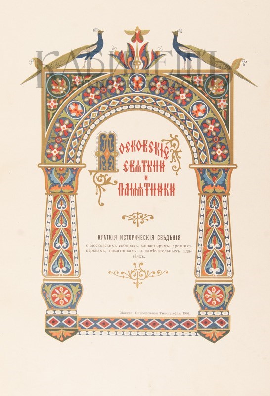 Московские святыни и памятники. Краткие исторические сведения о московских соборах, монастырях, древних церквах, памятниках и замечательных зданиях. М., синодальная типография, 1903.