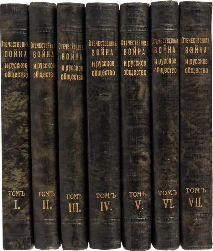 Экземпляр в издательских художественных ледериновых переплетах, с золотым тиснением по корешкам и верхним крыш-кам. На титульном листе владельческий штамп.
