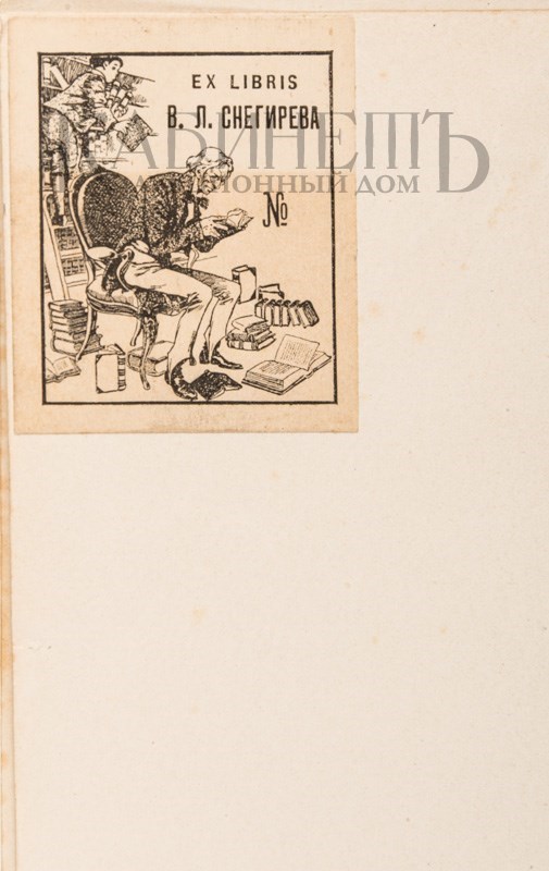 Экземпляр в издательском составном переплете с золотым тиснением по верхней крышке и корешку, серебряным тиснением по верхней крышке. Тройной золотой обрез. Форзацы из бумаги, имитирующей муар. Незначительные потертости верхней и нижней части корешка, незначительные временные пятна на титульном листе, одна иллюстрация на раскладном листе подклеена по сгибам клеевой тканью. Сюжетный бумажный экслибрис В.Л. Снегирева на свободном пустом листе в начале блока. Дарственная надпись в верхнем поле титульного листа: «СПБ 1904 г. 24/VII Дорогому и глубокоуважаемому / Вениамину Ивановичу / от В. Квадри».