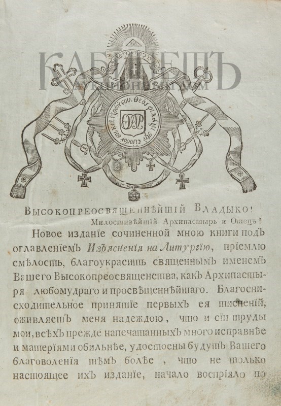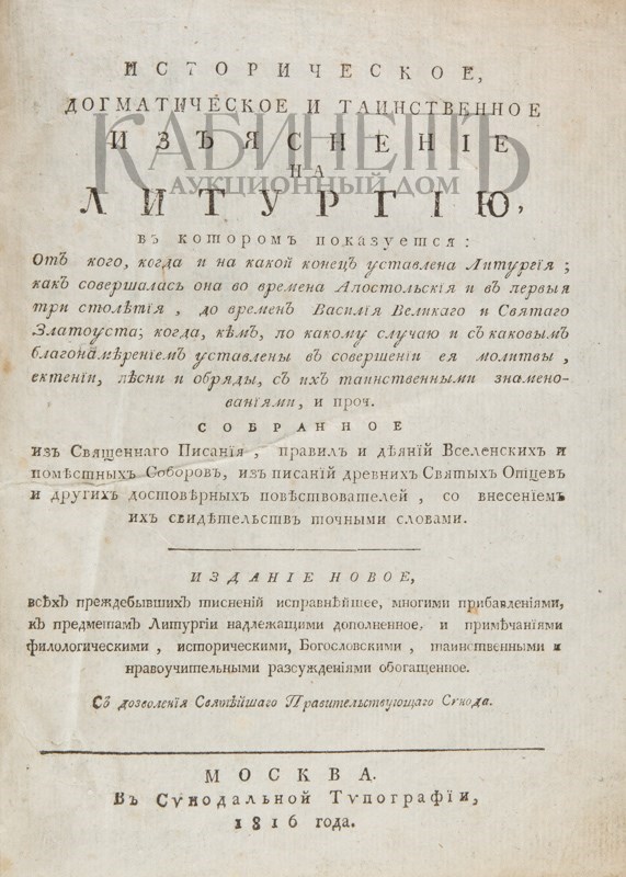 Архив аукциона №28(80) Лот 18 Дмитревский, И.И. Историческое, догматическое и таинственное изъяснение на литургию, в котором