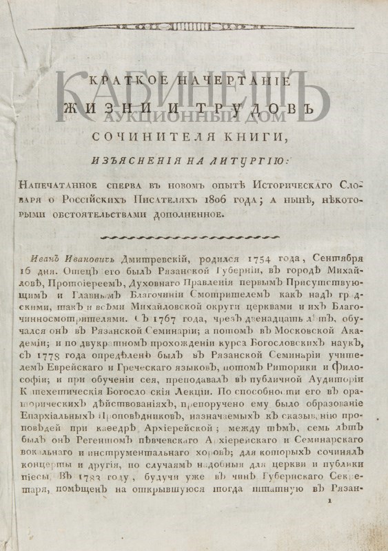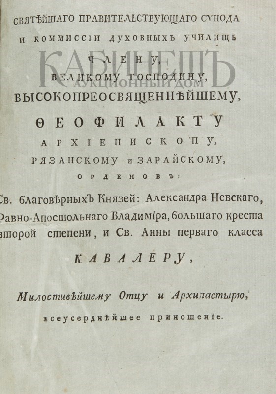 Прижизненное издание богослова и переводчика Ивана Ивановича Дмитревского (1754–?), за которое автор получил денежную награду от императора Александра I и был произведён в коллежские асессоры.