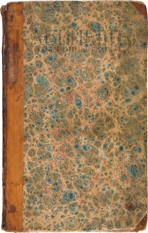 Экземпляр в старинном полукожаном переплете, разлом по корешку, незначительные загрязнения, следы от залистывания, пятна на форзаце и свободном после форзаца листе, владельческие пометки.