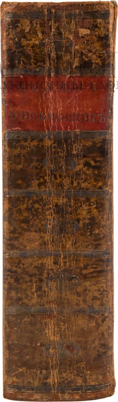 Экземпляр в старинном полукожаном переплете. Тройной крапленый обрез. Потертости, утраты кожи в уголках, разлом в верхней части корешка, блок в хорошем состоянии.