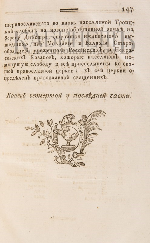 Часть I – [2], III, 107 с., 1 л. фронт. (портр.); Часть II – 103 с., нет 4 л. ил. Часть III – 63 с., нет 2 л. ил.; Часть IV – 148 с., нет 5 л. ил. Фронтиспис выполнен в технике гравюры на меди, заставка и концовка – гравюры на дереве.