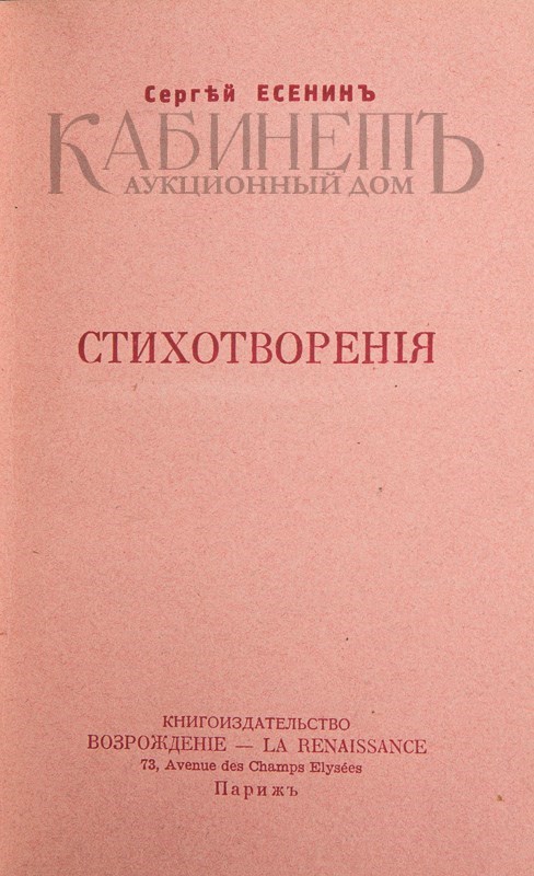 Есенин С. Стихотворения 1910-1925. Под редакцией и со вступительной статьей Георгия Иванова. Париж, книгоиздательство Возрождение, [1951].