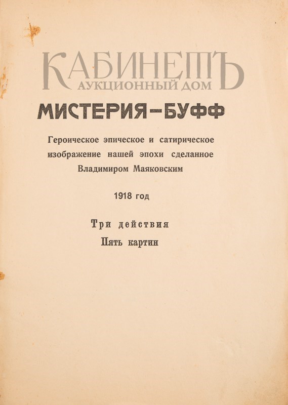Маяковский В. Мистерия-Буфф: Героическое, эпическое и сатирическое изображение нашей эпохи, сделанное Владимиром Маяковским. Пг., ИМО, [ноябрь] 1918.