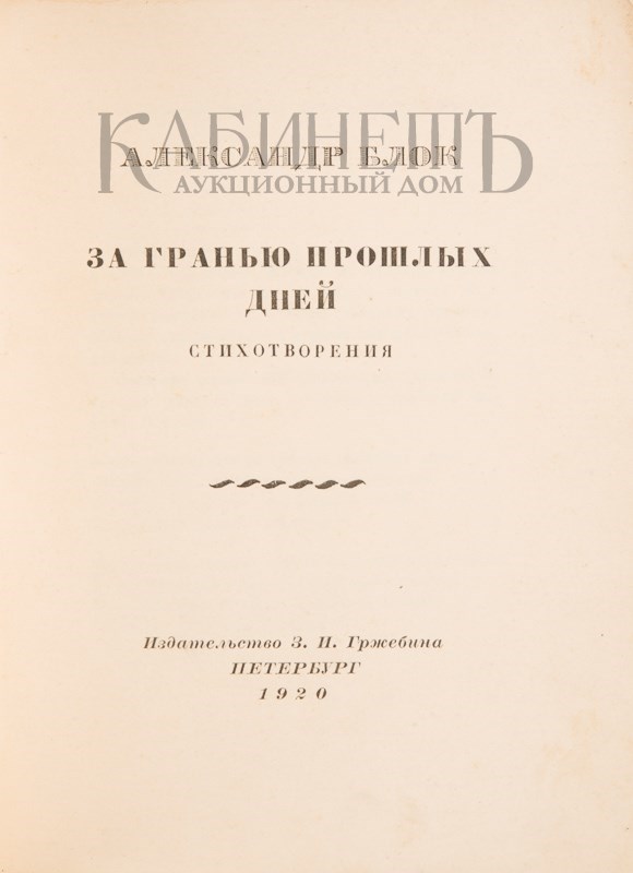 Блок А. За гранью прошлых дней. Стихотворения. Пг., издательство З.И. Гржебина, 1920.