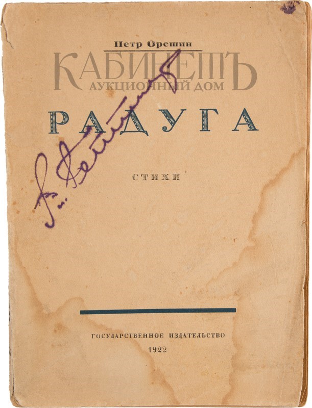 Экземпляр в издательской бумажной обложке, на обложке подтеки отводы, мелкие утраты по корешку в нижней и верхней части, незначительные загрязнения, владельческая пометка синими чернилами.
