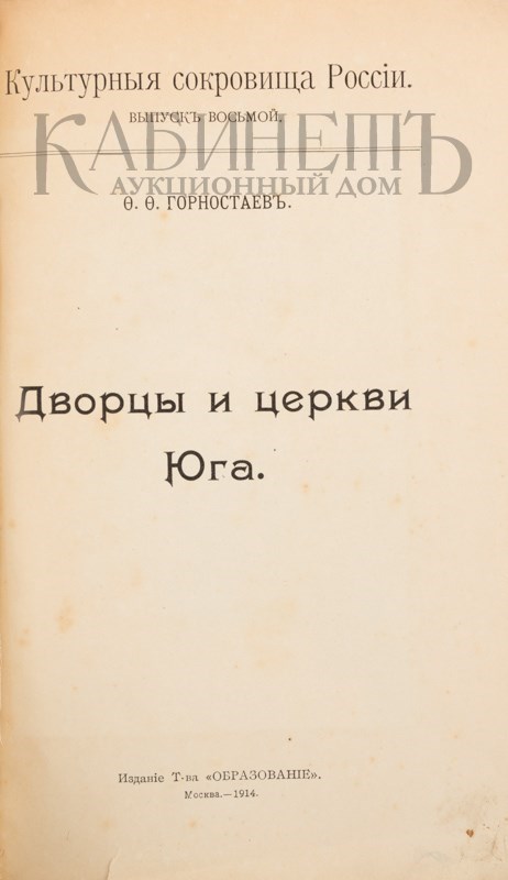 Прижизненное издание видного русского искусствоведа Федора Федоровича Горностаева (1867–1915), посвященное истории сооружения дворцов и храмов, располагавшхся на территории Украины.