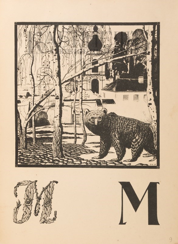 Экземпляр вышел без обложки, в двух местах листы проколоты и скреплены тесемками, незначительные потертости углов, мелкие незначительные утраты по краям листов. Для издания изготовлена коробка, обтянутая тканью, с кожаной наклейкой по корешку, на наклейке золотое тиснение. На обороте титульного листа владельческий экслибрис графитным карандашом – монограмма в виде буквы «М».
