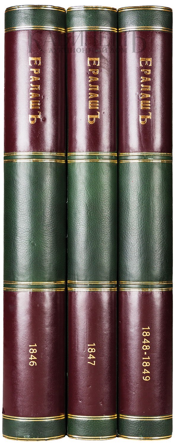 Экземпляр в современных полукожаных коробках с золотым тиснением по корешкам и крышкам, утрачены титульные листы за 1847 и 1848 гг.; утрачены листы № 11 и № 18 за 1848 г.; утрачены листы №№ 2–16 за 1849 г. Все листы вставлены в современные паспарту.