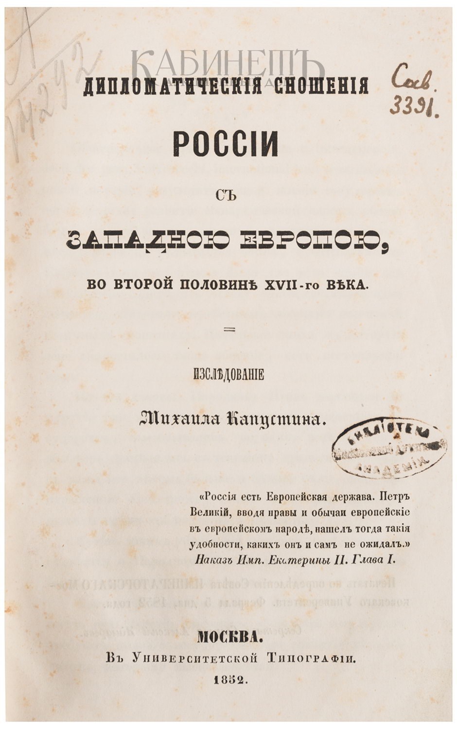 Экземпляр в современном полукожаном переплете с золотым тиснением по корешку.