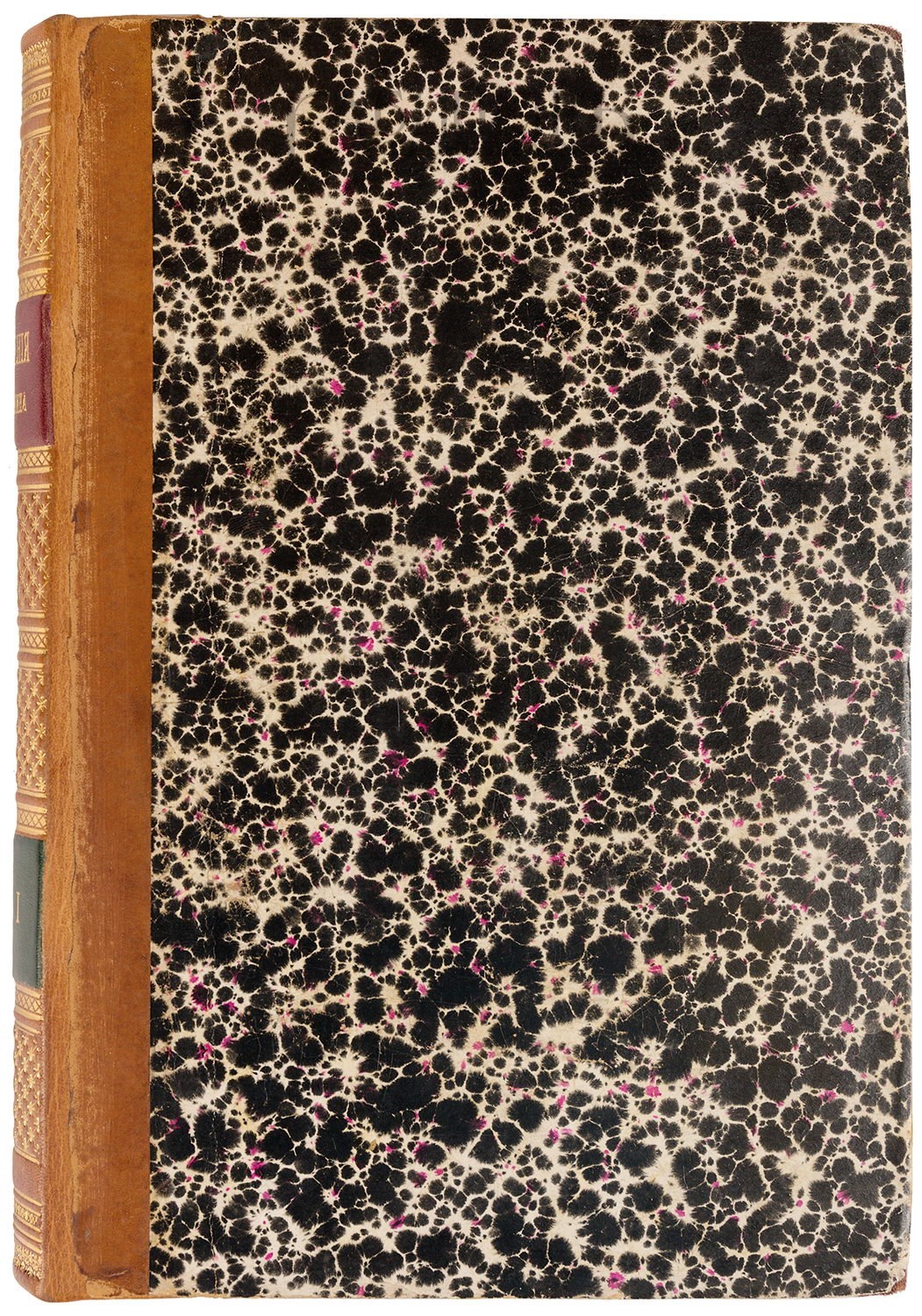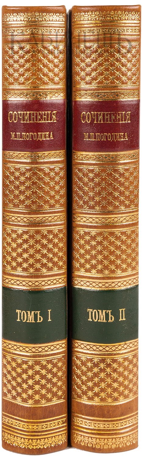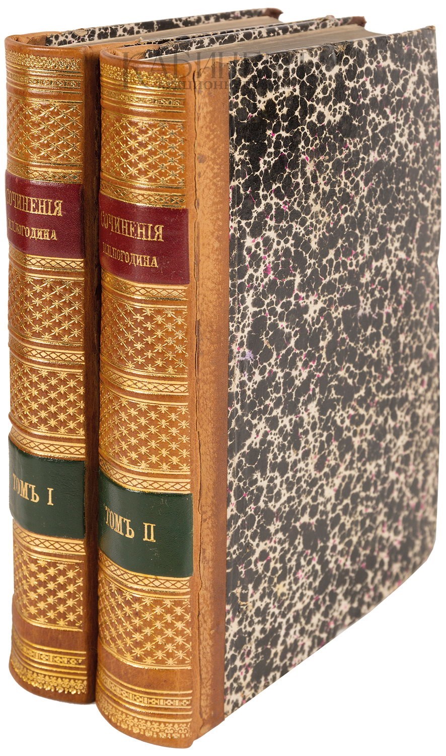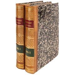 Экземпляр в старинных полукожаных переплетах, корешки современные с золотым тиснением, «лисьи» пятна, штампы на титульных листах.