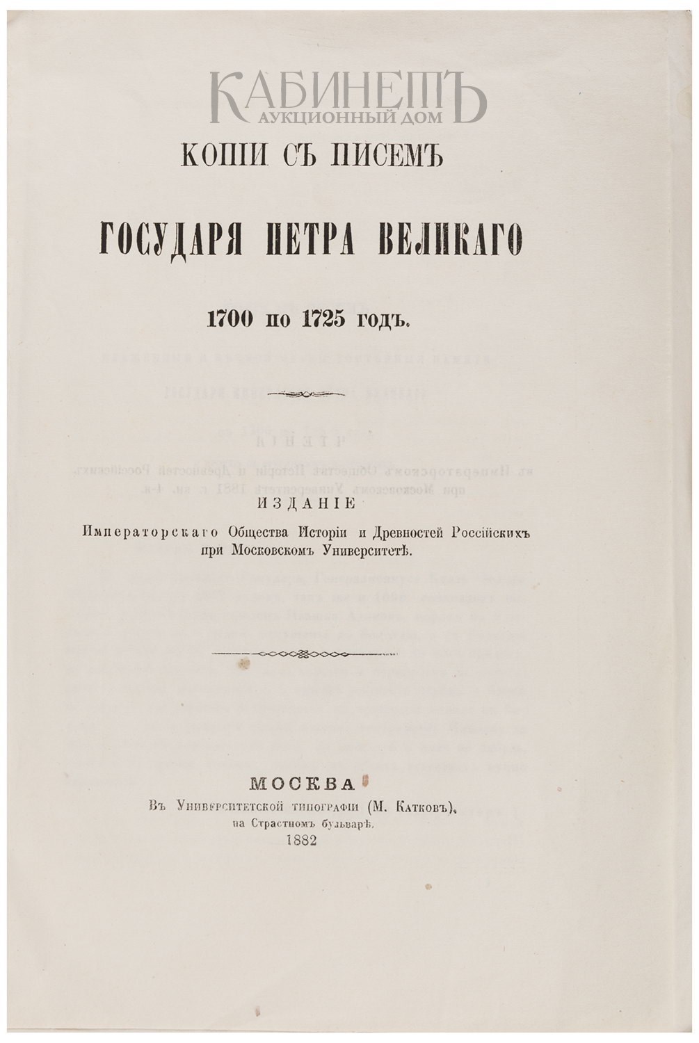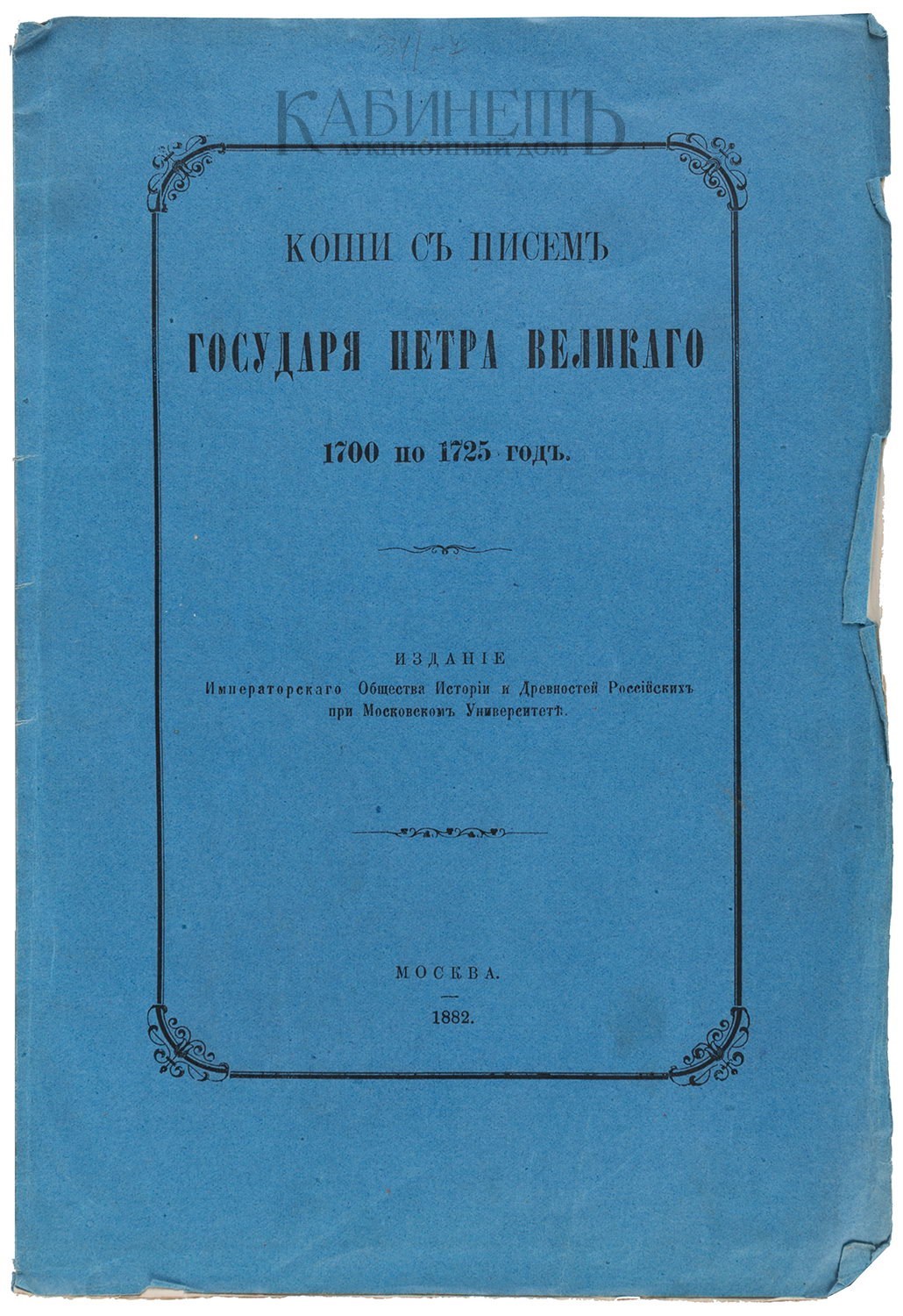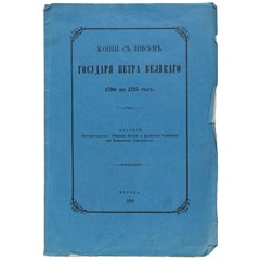 Копии с писем Государя Петра Великого 1700 по 1725 год. М., издание Общества Истории и Древностей Российских при Московском Университете, 1882.
