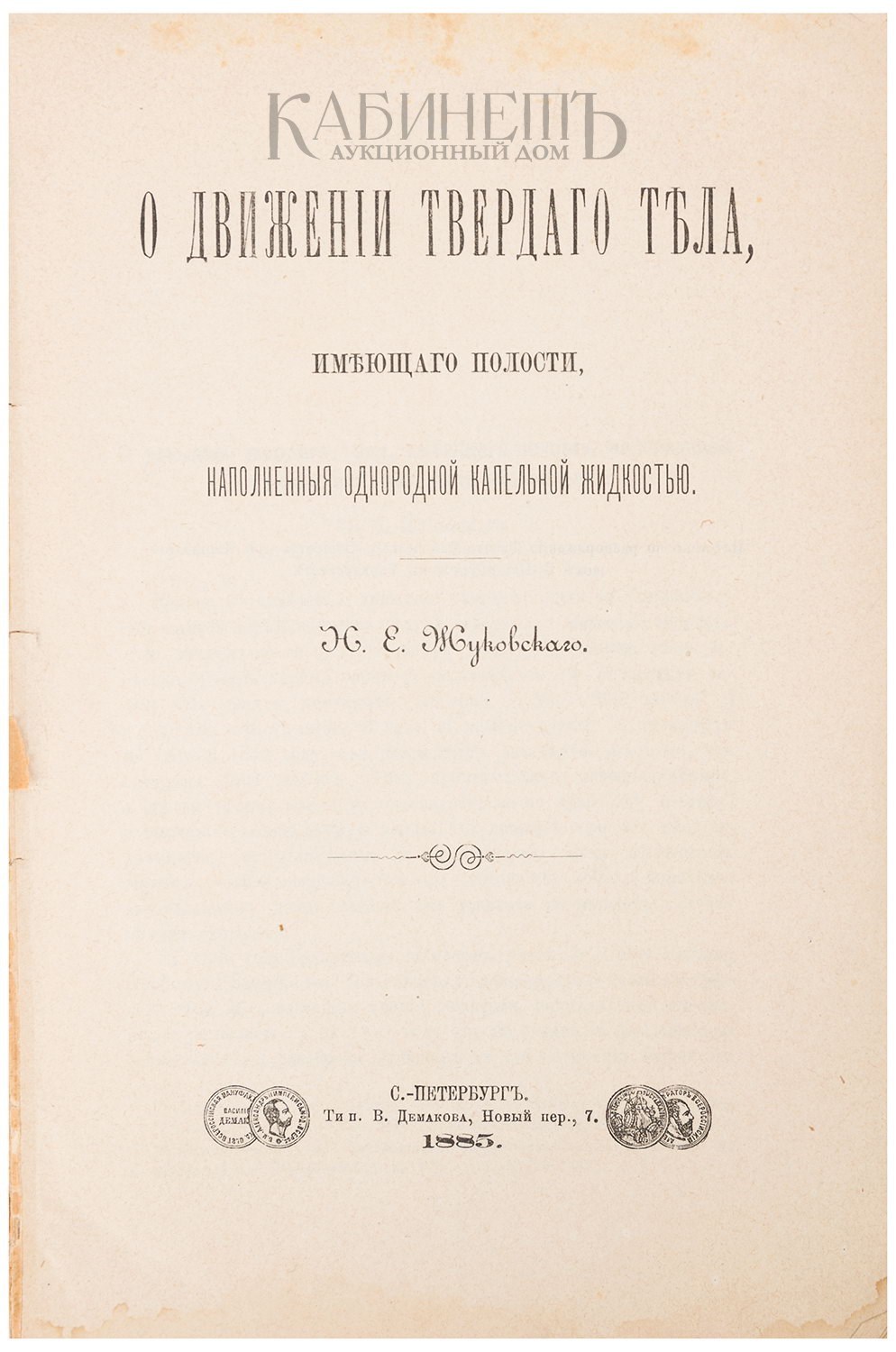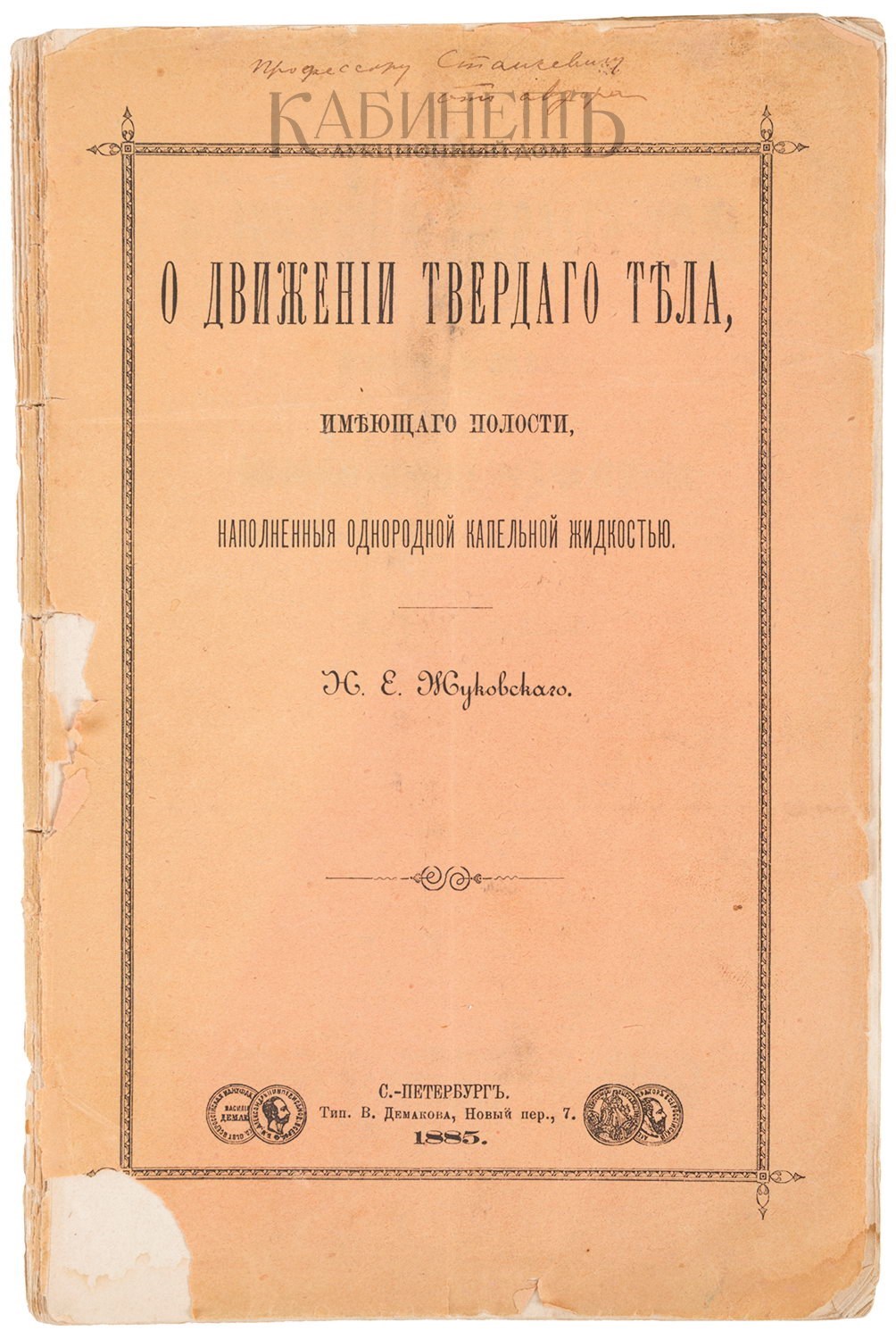 Жуковский Н. О движении твердого тела, имеющего полости, наполненные однородной капельной жидкостью. СПб., типография В. Демакова, 1885.
