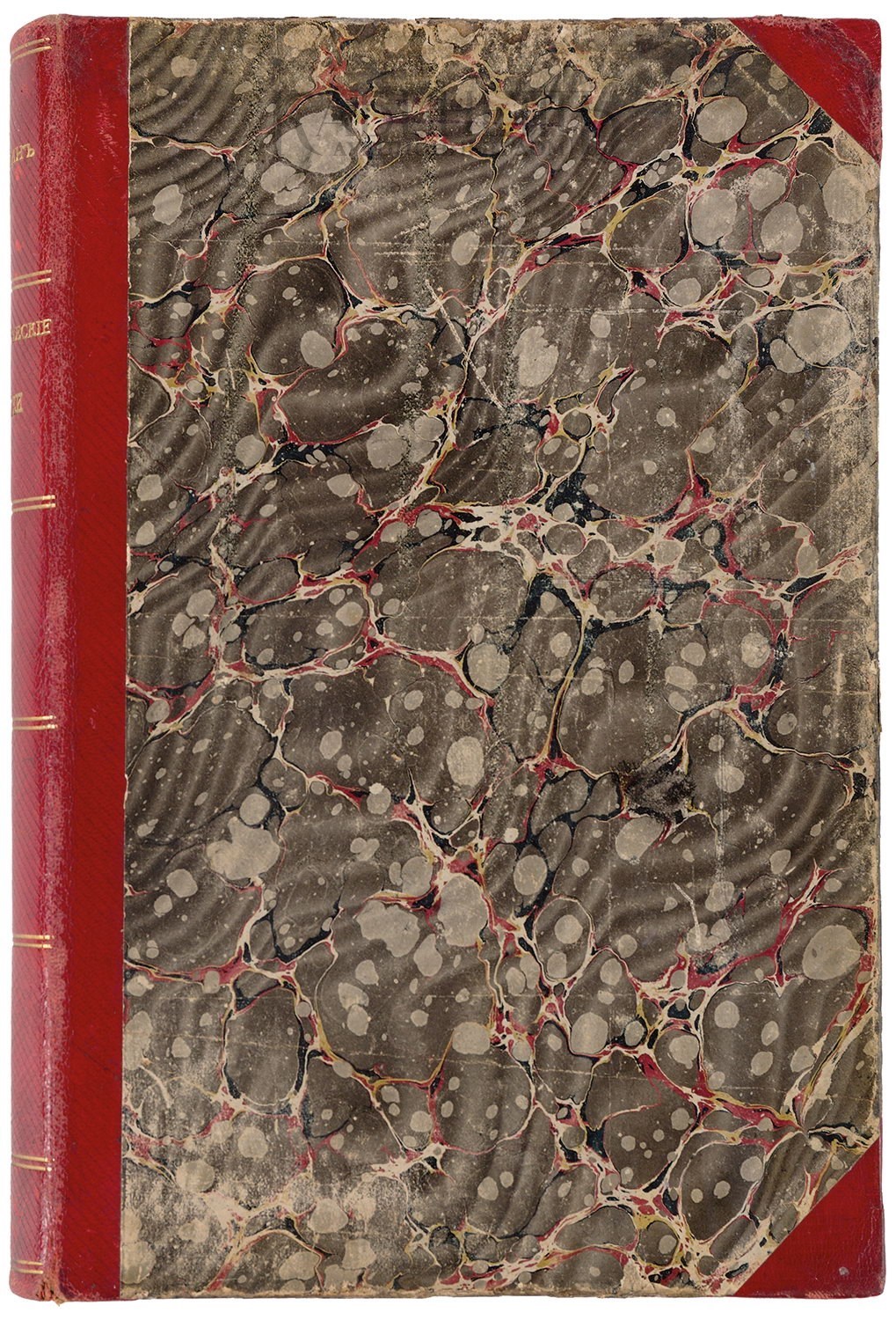 Экземпляр в старинном полукожаном переплете с золотым тиснением по корешку, сохранено ляссе, незначительные потертости переплета.