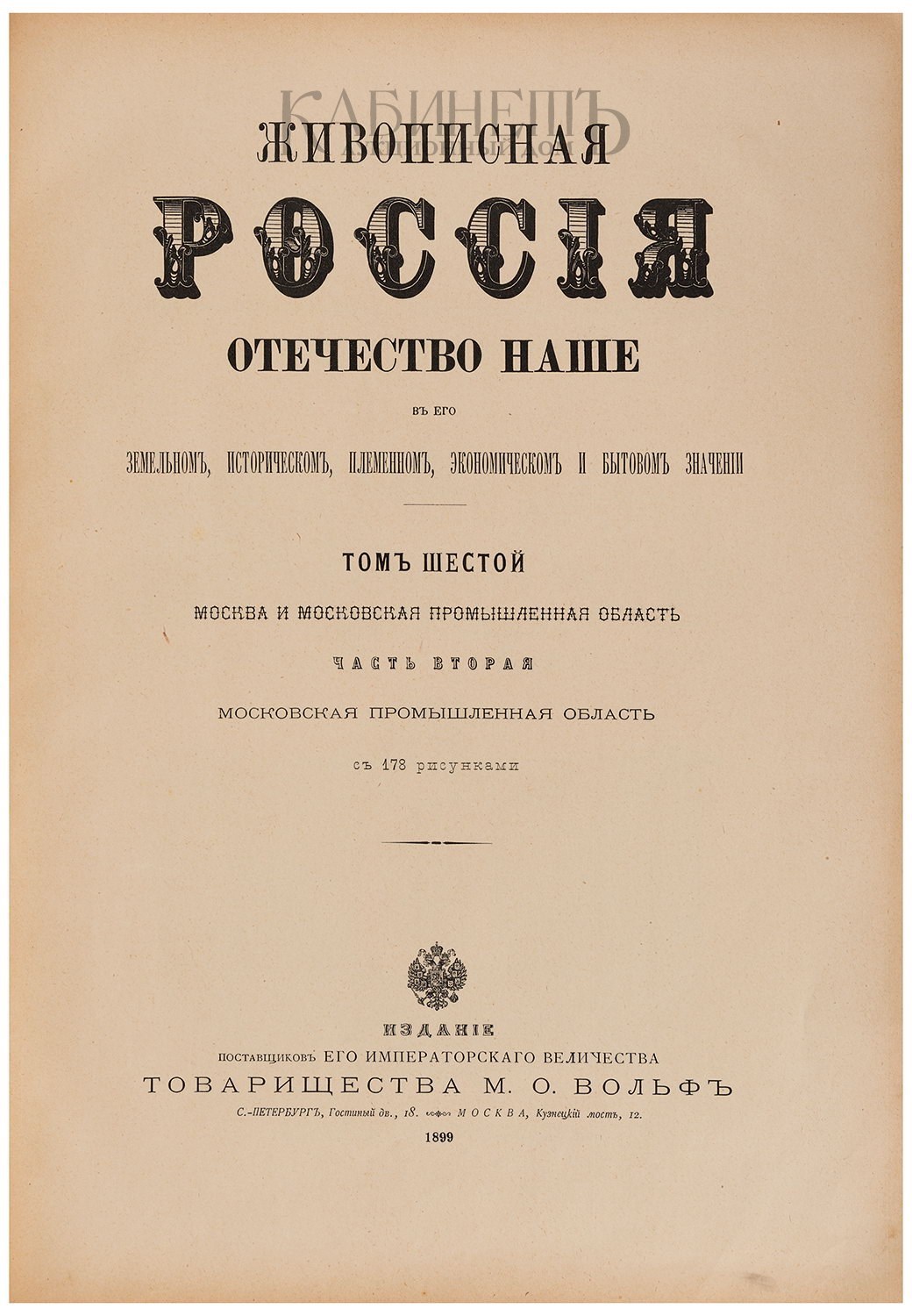 Живописная Россия. Отечество наше в его земельном, историческом, племенном, экономическом и бытовом значении. Под общей редакцией Семенова П.П. Том VI. Часть II. Московская промышленная область: Тверская, Ярославская, Костромская, Нижегородская и Владимирская губернии. М.–СПб., издание Товарищества М.О.Вольф, 1899.