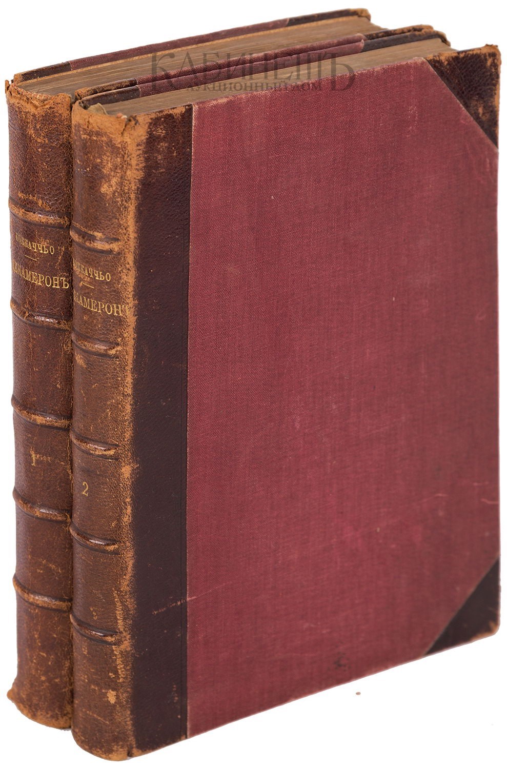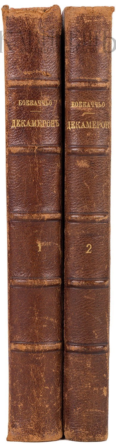 Экземпляр в старинном полукожаном переплете, с золотым тиснением по корешкам, незначительные потертости переплетов, надрывчики в верхней части корешков.