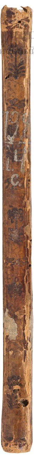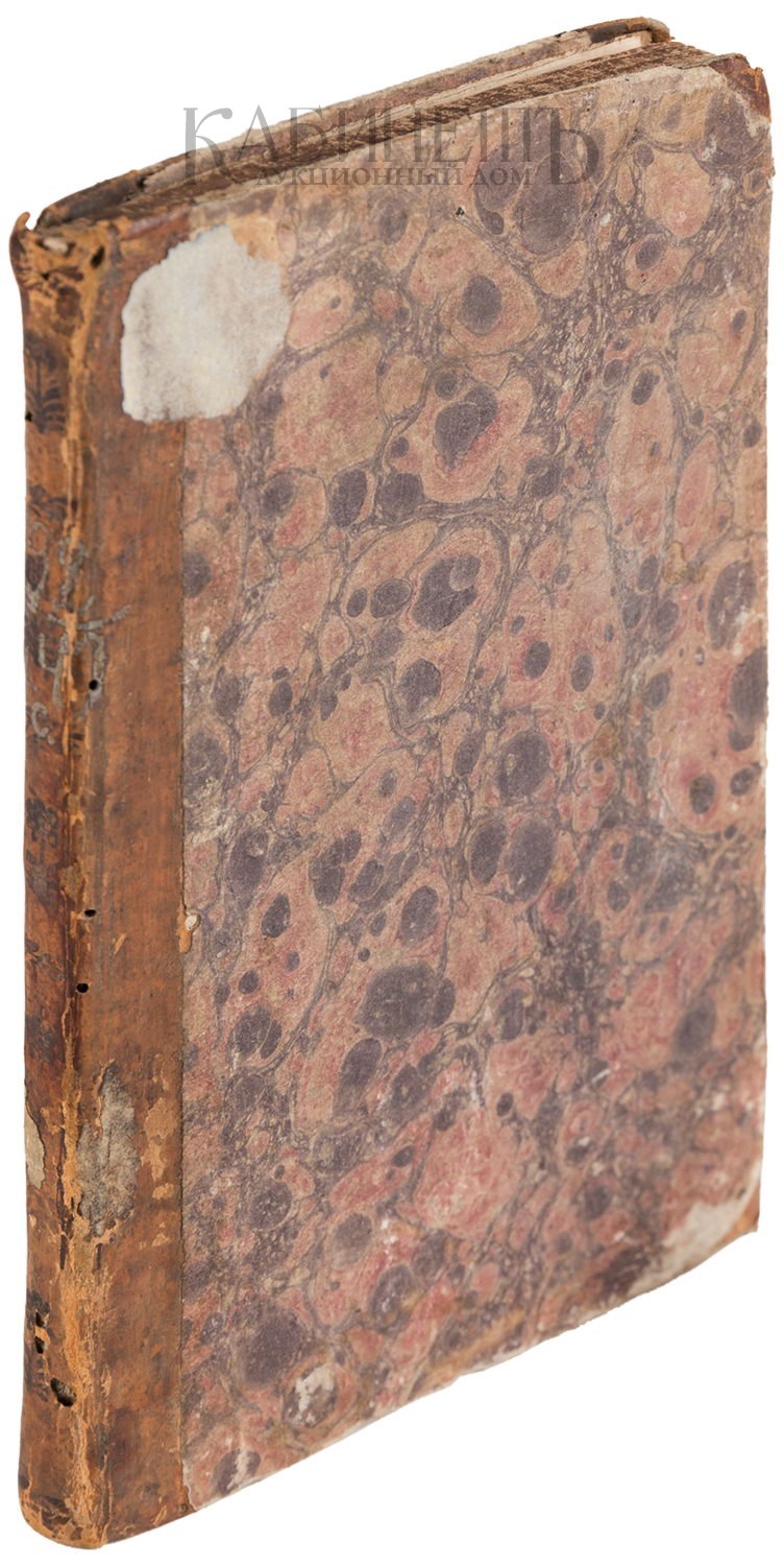 Экземпляр в старинном полукожаном переплете, потертости, загрязнения, следы реставрации страниц, владельческие пометки синими чернилами.