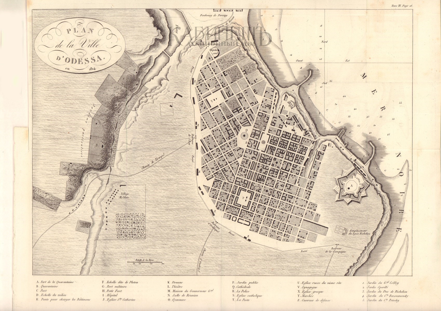 Plan de la Ville d'Odessa. 1804 г. [На фр. яз.] 31 х 41 см (лист). Бумага, гравюра на меди.