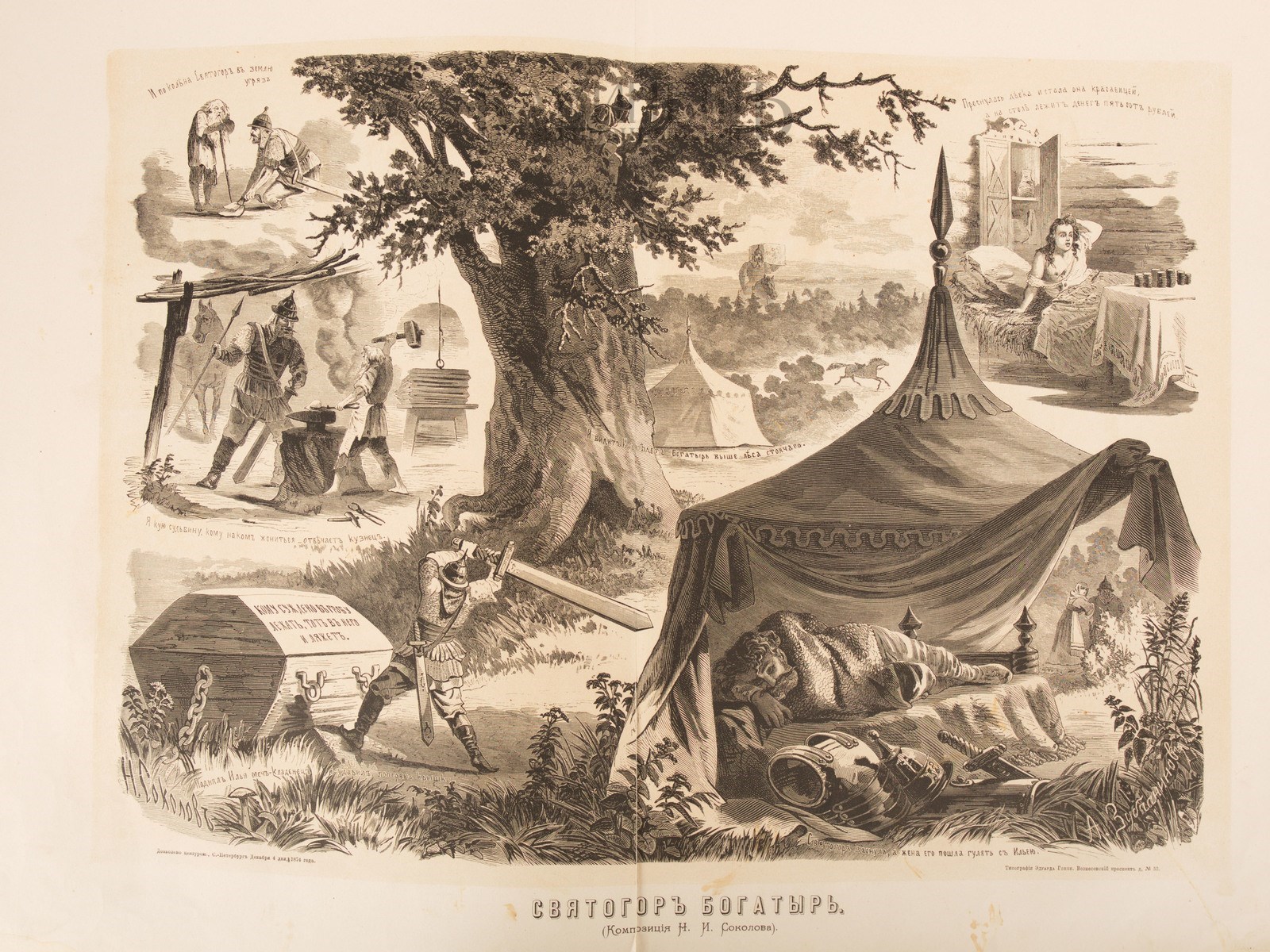 Роскошно изданное издание двенадцати популярных сказок с подробными объяснениями и комментариям, и с иллюстрацией к каждой сказке, а также множество виньеток, заставок, буквиц. Иллюстрации выполнены по рисункам Н.И. и Н.Н. Соколовых, И. Панова, К. Брожа, В.М. Васнецова, гравированы Л. Серяковым, А. Зубчаниновым и Э. Даммюлером. Издание было осуществлено по заказу царской семьи, в частности, императрицы Марии Александровны. Альбом был составлен для журнала «Всемирная иллюстрация» писателем Петром Николаевичем Петровым (1827–1891).
