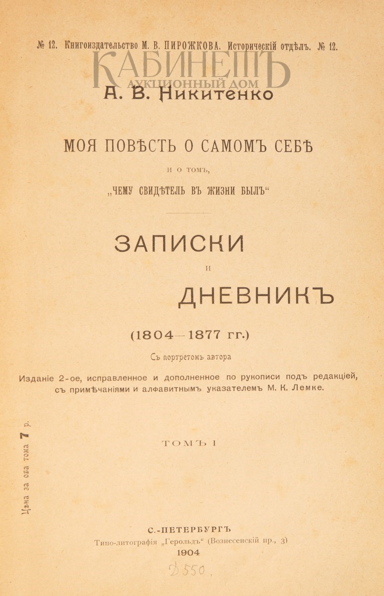 Воспоминания и дневник литературного критика, историка литературы, академика Александра Васильевича Никитенко (1804-1877) являются уникальным источником для изучения истории русского общества и литературы середины XIX в.