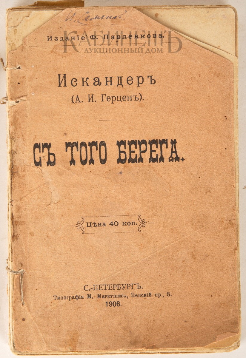 Первое издание книги на русском языке вышло в Лондоне в 1855 г. До этого она была напечатана в Гамбурге на немецком языке в 1850 г.