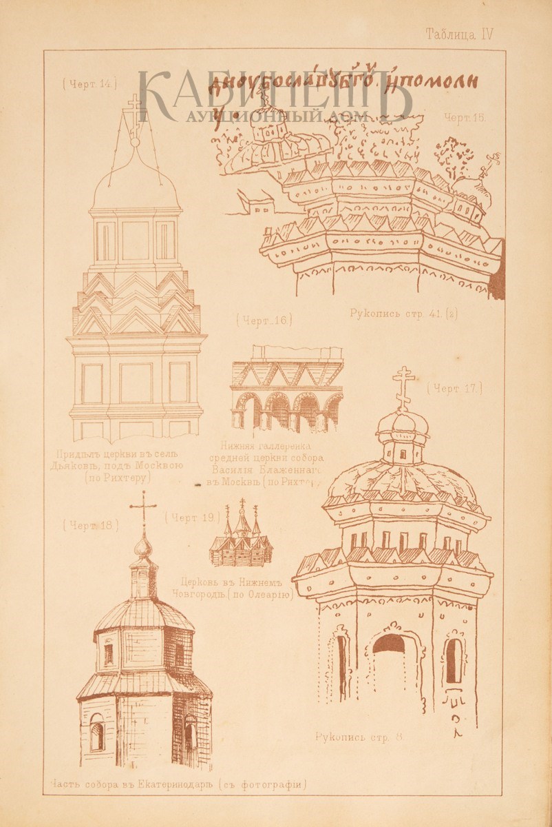 [2], 41 с., 16 л. ил. 30 х 20 см. Во владельческом полукожаном переплете эпохи. Незначительные потертости. Незначительные пятна на переплетных крышках. На титульном листе автограф автора: «Русскому ученому и отличному человеку Дмитрию Яковлевичу Самохвалову от горячо преданного автора 20 \ XII 1881».