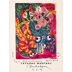 Маврина (Лебедева) Татьяна Алексеевна (1902–1996) – художник-живописец, график, иллюстратор, сценограф, заслуженный художник РСФСР (1981), лауреат Государственной премии СССР (1975). Училась во ВХУТЕМАСе/ВХУТЕИНе в Москве (1921–1929). Сотрудничала в Госиздате, Детгизе, Гослитиздате, издательствах «Безбожник», Academia, «Искусство», «Детский мир», «Советский художник». С 1928 г. участвовала в выставках Общества художников «РОСТ», 5-й выставке живописи и графики современных русских художников в Феодосии (1929), «Художники РСФСР за XV лет» (1932). Член и экспонент группы «13» (1929, 1931) и др. Персональные выставки прошли в Москве (1946/1947, 1959, 1963, 1973), Ленинграде (1960) и Загорске (1978). Произведения находятся в ГТГ, ГМИИ им. А.С. Пушкина, ГРМ и других музеях.