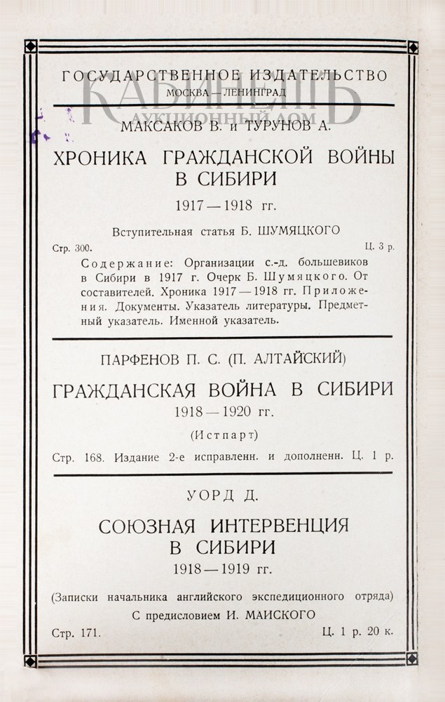 4) Алексеев С.А. Гражданская война в Сибири и Северной области. Под редакцией и с предисловием Н. Л. Мещерякова. М.-Л., Государственное издательство, 1927.