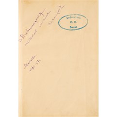 1 л. фронт., [2],208 с. 19,3 х 13,5 см. В издательском коленкоровом переплете. Небольшие потертости и загрязнения. На переднем форзаце дарственная надпись жены автора Раисы Профирьевны Островской: «В Библиотеку Томской школы. Островская. Москва 12/II-37 г.». На титульном листе, переднем форзаце и ряде страниц в блоке штемпельный экслибрис «Библиотека И.Ф. Беляк». Блок преимущественно чистый.